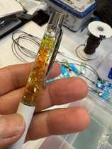 願いを叶えるアロマオイル『メモリーオイル』と、好きなガラスやビーズを選んで作ります♪