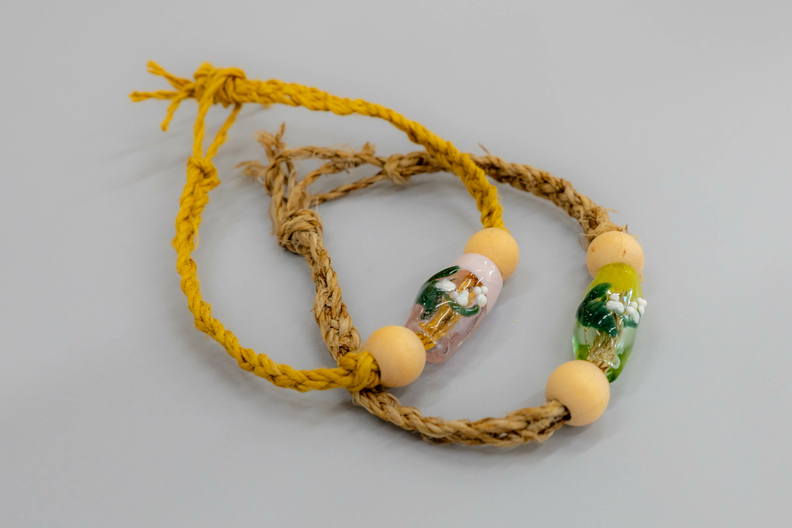 SHiMA・SHiMAがすずらんをモチーフにして制作したガラスビーズを組み合わせ、