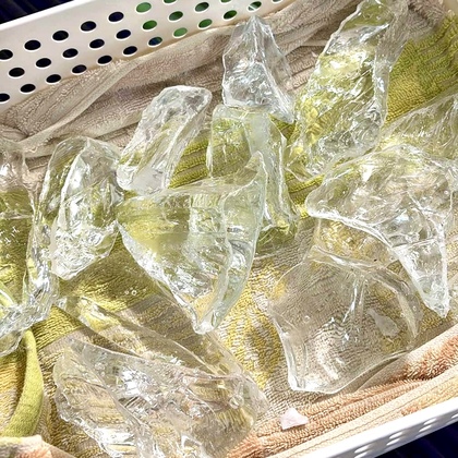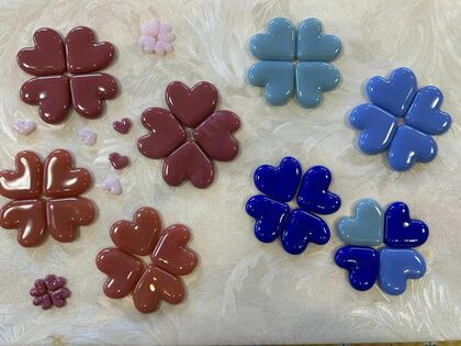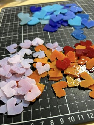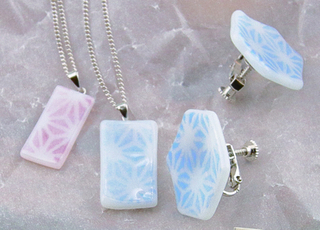 東京・東青梅で教室を主宰する江戸型彫職人・高井章夫氏の指導で制作した麻の葉紋様の型を使い、ガラスに焼き付けました。
